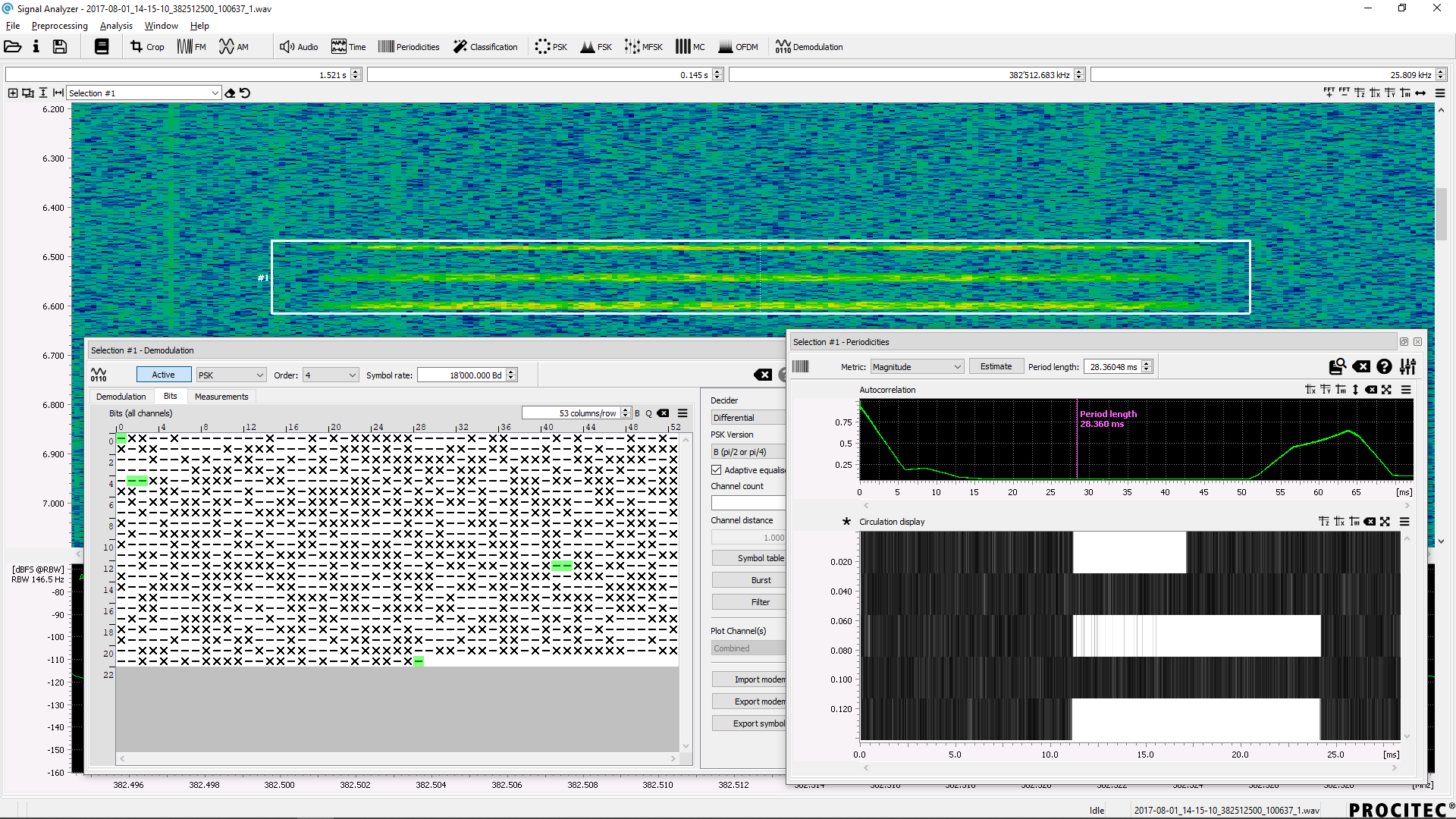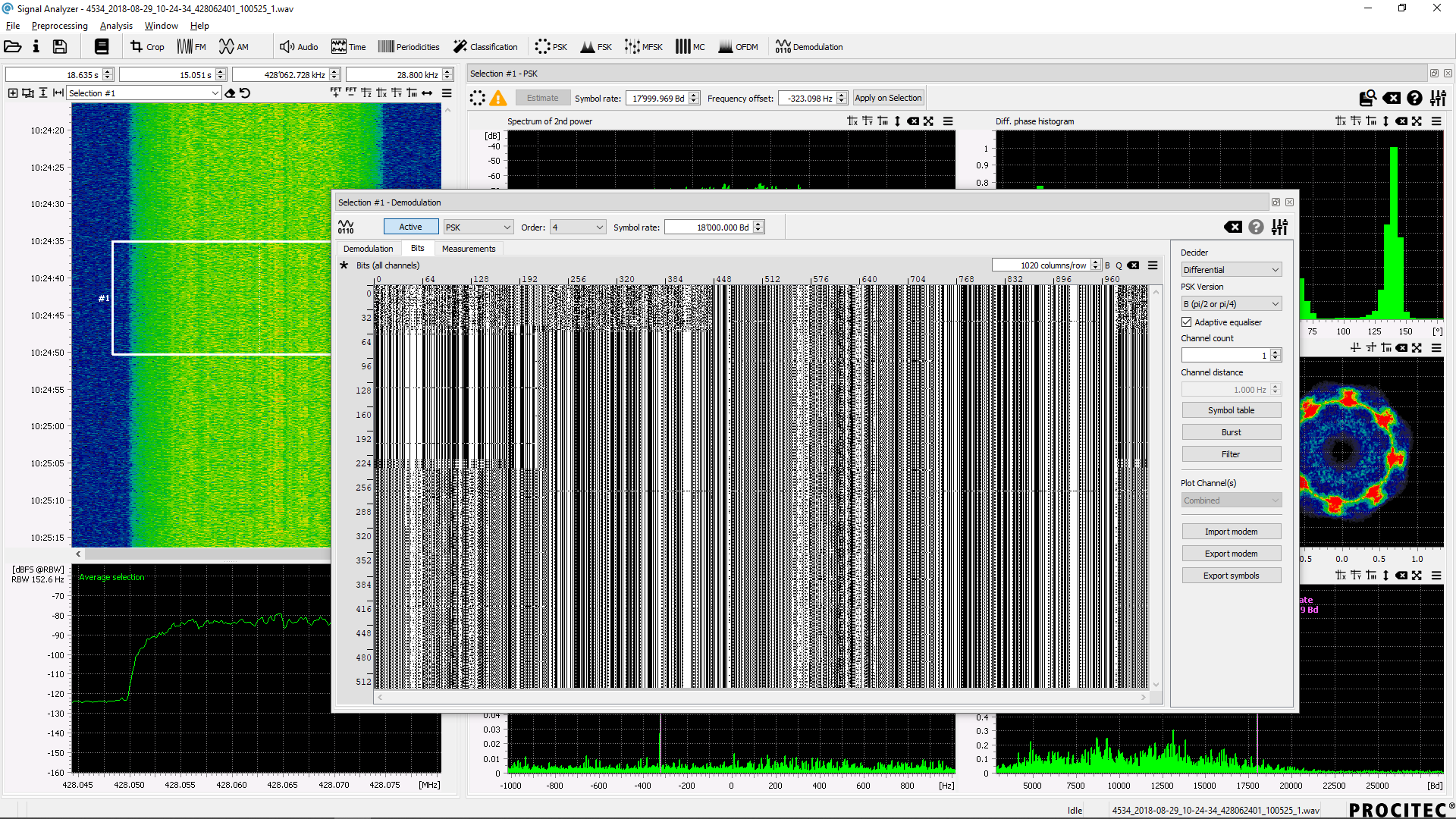The software now offers the option of demodulating the signal. Included are the demodulators for FSK and PSK, which can be parameterized in a wide range and include additional functions such as adaptive equalization and automatic FSK fading correction.