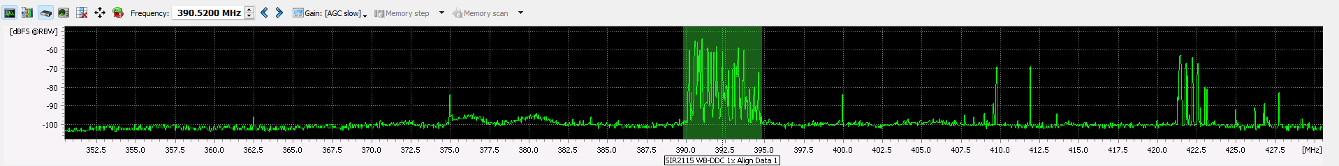 The hold time can set between 1 ms and 1 s. The frequency ranges of the DDC is freely adjustable within the HF range. The broadband DDC has a constant, selectable bandwidths of the HF DDC wideband channels.
